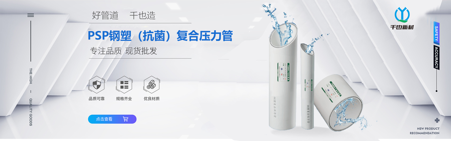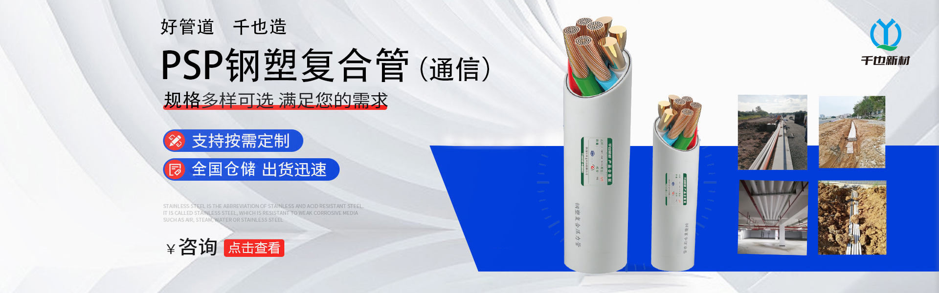查看详情“千也”牌PSP钢塑复合管是一种新型的给水、防腐管道,它既有钢管的强度,又有塑料管耐腐蚀、耐磨损、流体阻力小等优点。相比于传统的镀锌管,PSP钢塑复合管克服了容...…